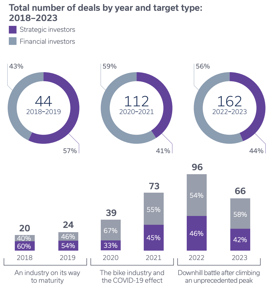 In 2024, investment bank Houlihan Lokey and management consulting firm Kearney released a comprehensive report on M&A activity in the cycling industry, analyzing trends from 2020 through 2024. It is worth reading in full, but here are the key takeaways.